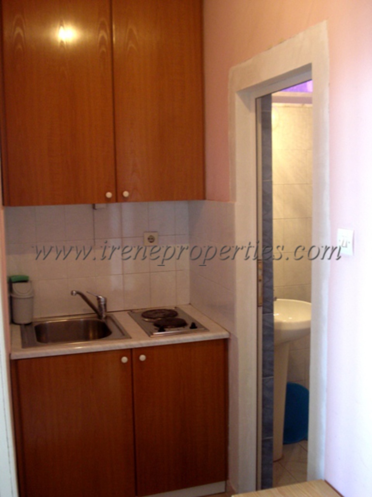 Разпределение: бокс (на усвоена тераса) с бар-плот към дневна, спалня, баня с тоалетна. Настилки и стени на помещения- нова мозайка, ламинат, латекс. Настилки и стени на баня - теракот, фаянс
