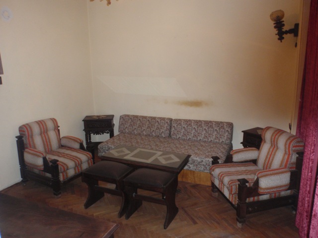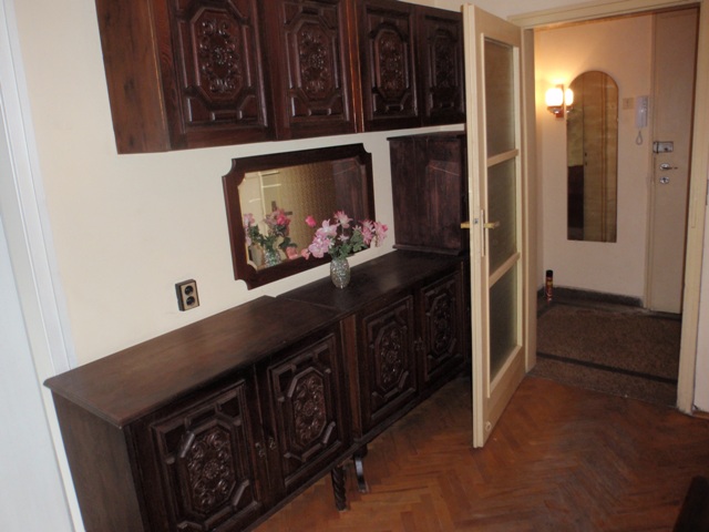 Състои се от дневна с преход към спалня, кухня, антре и баня с тоалетна. Апартаментът е обзаведен и в много добро състояние. В дневната има комплект масивни мебели, гарнитура - диван с фотьойли и масичка. В спалнята - ъглови легла, гардероб, масичка. Кухнята е с балкон, шкафове, маса, столове, печка. Настилките са циклен и лакиран паркет, теракота и балатум. в банята - теракота и фаянс, стените в стаите са с латекс. Апартаментът е в масивна сграда от 60-те г. с югозападно изложение - към ул. Кирил и Методий. Много добри комуникации с цяла София.