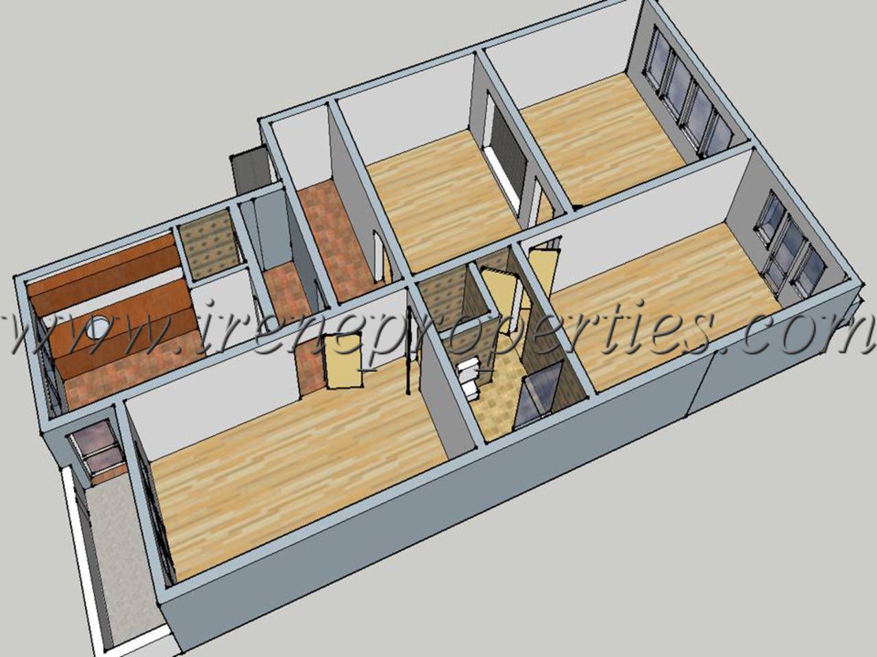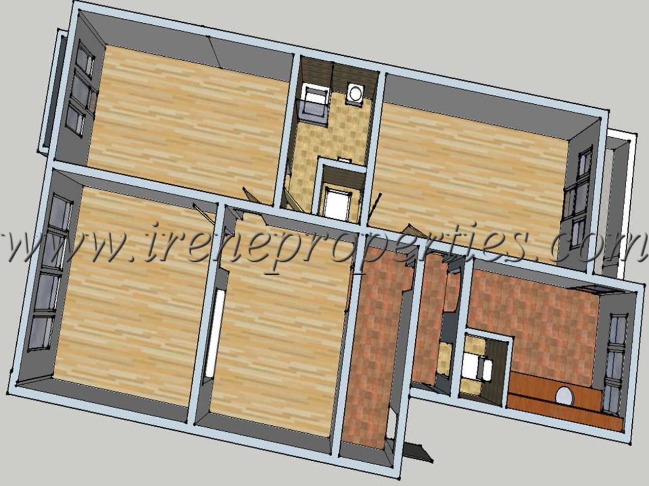 Много просторно жилище с функционално разпределение, след основен ремонт. 5 работни помещения, като едно от тях е обособено, като кухня, 2 бани, WC, 2 балкона.