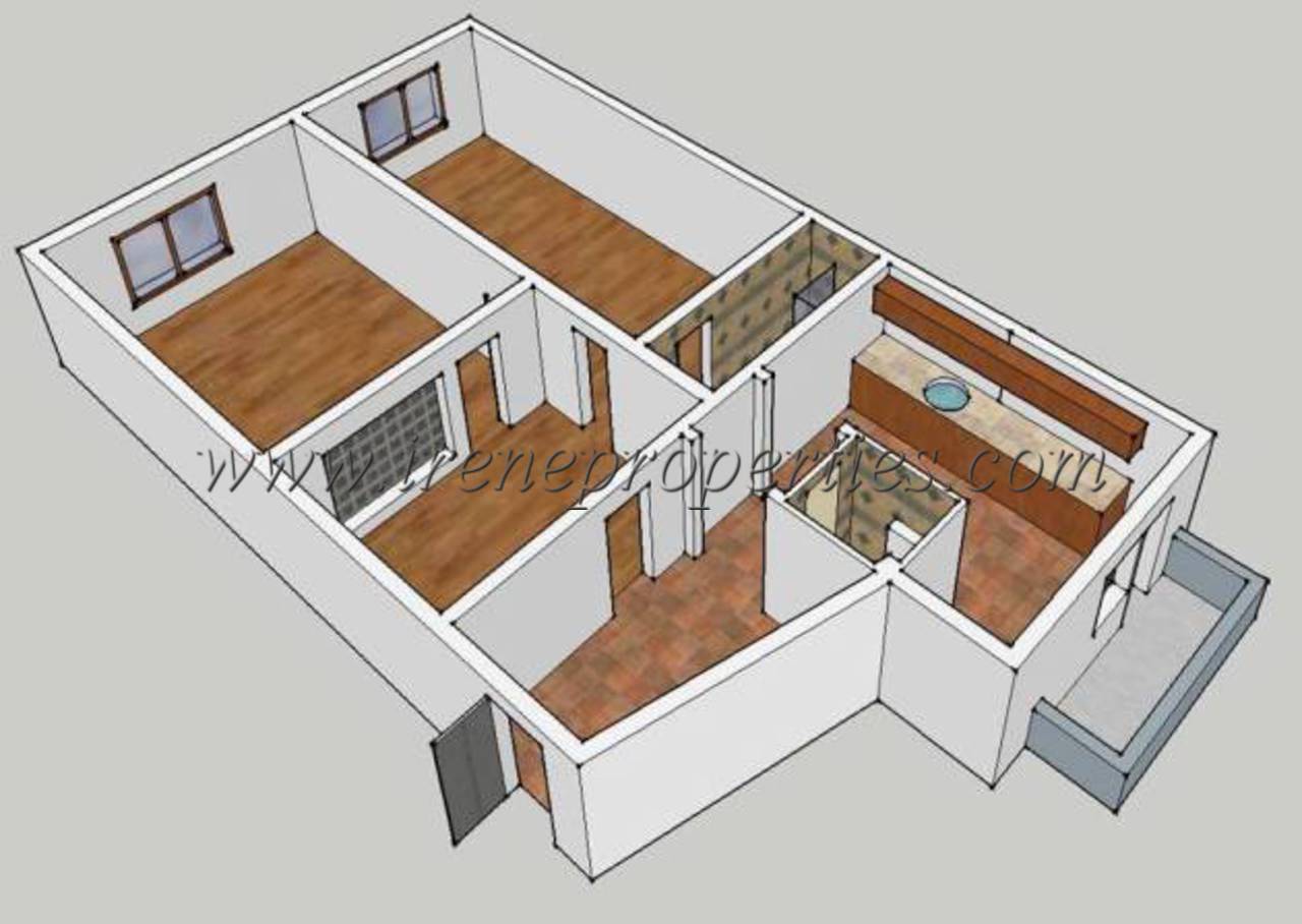 This apartment fully renovated, is on third floor and oriented to south. It is composed with entrance, living room, two spacious bedrooms, fitted kitchen, bathroom with shower and toilet and also separate toilet.
